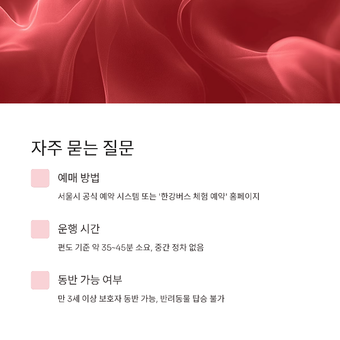 서울시 공식 예약 시스템 또는 '한강버스 체험 예약' 홈페이지에서 가능합니다. 카카오 알림톡으로도 공지돼요.